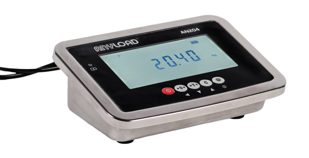 The ANYLOAD AN204 is a compact, stainless-steel digital weight indicator built for dependable, everyday industrial use. It offers clear 6-digit LCD readouts, basic weighing and counting modes, a long-lasting rechargeable battery, and RS-232 connectivity for printers and external systems.