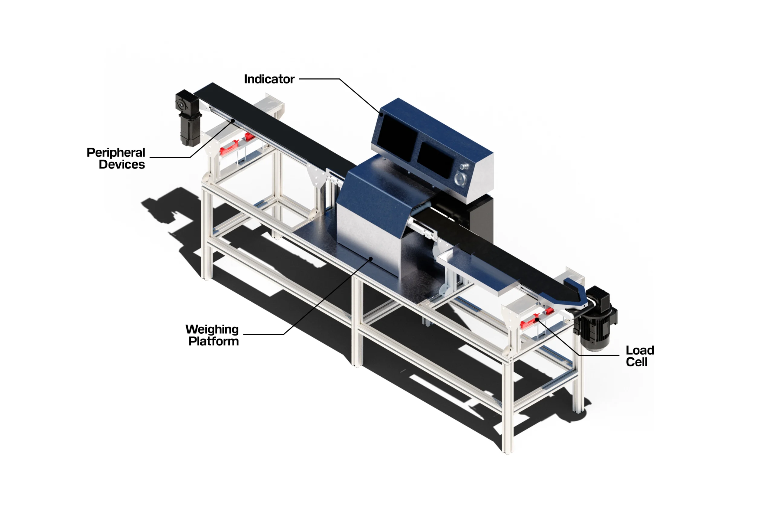 This encompasses any other components required to ensure operation of the scale, such as the conveyor belt, pneumatic sorters, diverters, data logging components, and others.