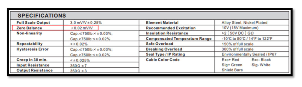 Compare the results against the zero balance specifications on the load cell datasheet. For example: