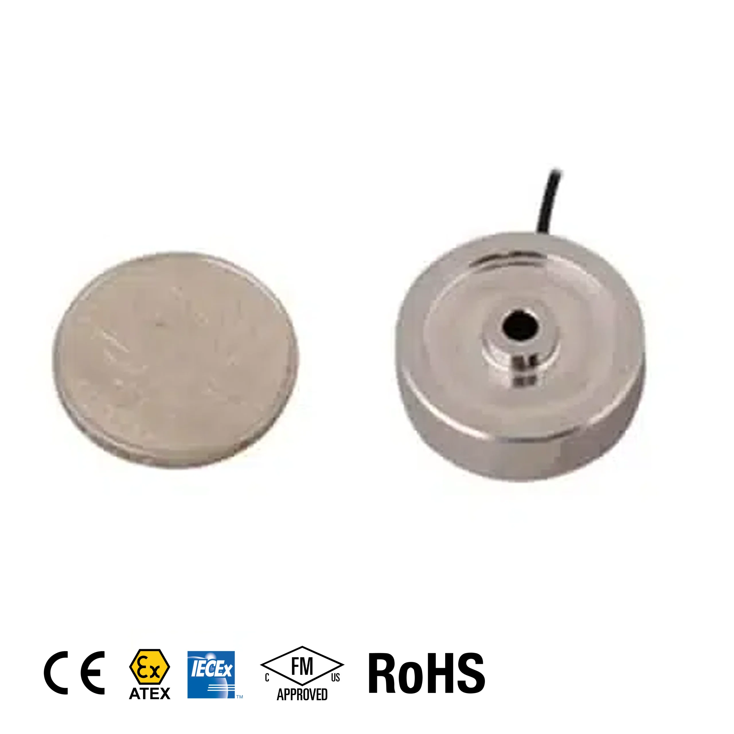 Load buttons are compact force measurement solutions ideal for applications where weight and space conservation are top priorities. The 296AS stainless steel IP66 waterproof construction provides superior value without sacrificing reliability. Its innovative design allows a bolt to pass through vertically to measure compression force; a simple, compact, time-saving weighing solution.