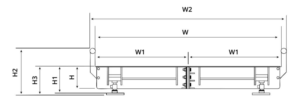 Disclaimer: Dimensions and specifications are nominal, rounded to the nearest 2 mm, and provided for reference only. For all design, fabrication, or installation work, refer exclusively to the certified control drawings supplied with your quotation — these define the governing dimensions and tolerances. Dimensional reporting follows ASME Y14.100 and ASTM A6 conventions for structural steel fabrication. ANYLOAD reserves the right to revise specifications without prior notice.