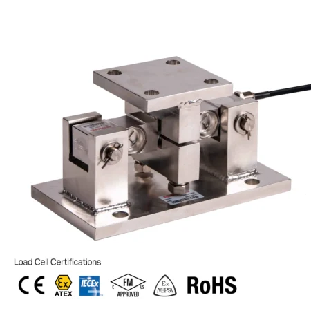 Tension weigh modules are commonly used for suspended vessel weighing systems, such as ingredient hoppers, suspended tanks, or reactors mounted from overhead structures. Like compression systems, a minimum of three modules is required for stability, with four-point configurations often used for larger or higher-capacity installations.